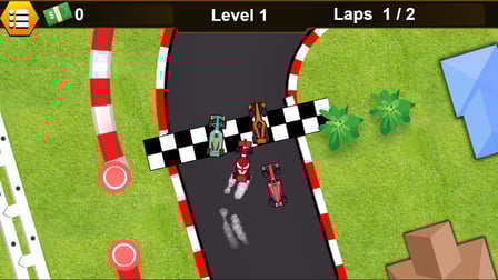 - Completa vueltas y logra el mejor tiempo para avanzar al siguiente nivel.