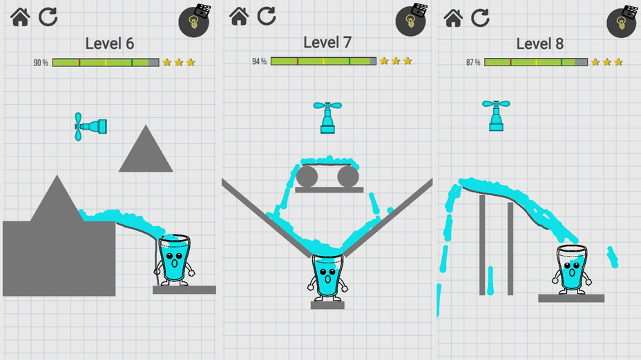 Actualmente, Fill The Glass es un juego para un jugador centrado en acertijos individuales y desafíos de lógica.