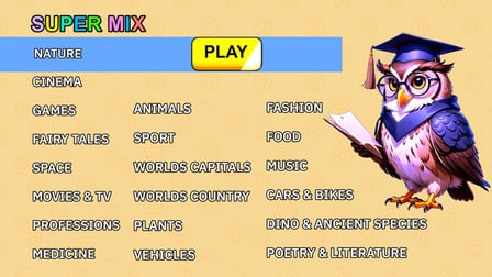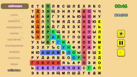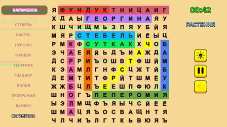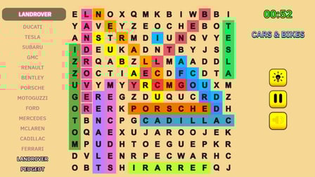 Fillwords: Find all the words es un emocionante juego de rompecabezas en el que puedes desafiarte a ti mismo para encontrar palabras ocultas en un tablero de juego. Juega en línea gratis sin descargar y sumérgete en la atmósfera de entrenamiento cerebral y enriquecimiento de vocabulario. Este juego es perfecto para los amantes de los juegos de palabras que disfrutan ampliando sus conocimientos en varios temas. Con un nivel de "súper mezcla" que combina palabras de todos los temas, cada sesión de juego ofrece combinaciones de palabras frescas y únicas. La interfaz vibrante e intuitiva hace que la experiencia sea aún más atractiva, proporcionando un entorno de juego encantador y colorido. Ya sea que juegues solo o con toda la familia, Fillwords: Find all the words es una excelente manera de mejorar tus habilidades de lógica, atención y vocabulario.