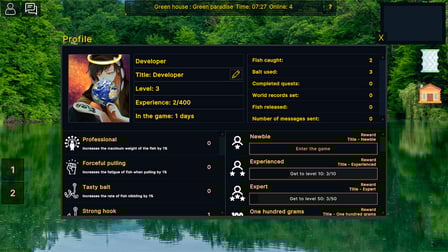 Fishing Online es un emocionante juego de simulador en el que puedes embarcarte en emocionantes aventuras de pesca. Juega en línea gratis sin descargar y sumérgete en la atmósfera de hermosos ríos, lagos y océanos repletos de más de 250 especies de peces. Desde capturas ordinarias hasta legendarios monstruos de aguas profundas, la pesca en línea ofrece una experiencia estimulante que combina la emoción de la pesca con el desafío de completar varias misiones y lograr altas clasificaciones. Con impresionantes gráficos y una amplia gama de artes de pesca a su disposición, puede mejorar sus habilidades y aspirar a convertirse en un verdadero profesional de la pesca. Interactúa con otros jugadores en la sala de chat, comparte tus experiencias y aprende secretos para mejorar tu destreza de pesca. ¡Sumérgete en un mundo donde cada captura te acerca a la gloria en la pesca en línea!