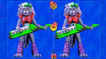 FNaF Find All 10 Differences fusiona la atmósfera espeluznante de Five Nights at Freddy's con la atractiva jugabilidad de los rompecabezas de objetos ocultos. A los jugadores se les presentan pares de imágenes con queridos personajes y escenas de FNaF. El objetivo es identificar las 10 diferencias entre cada pareja para avanzar en el juego. Con 30 personajes únicos para desbloquear, a los fanáticos de la franquicia les encantará el desafío de detectar incluso las variaciones más pequeñas en este juego misterioso pero divertido.