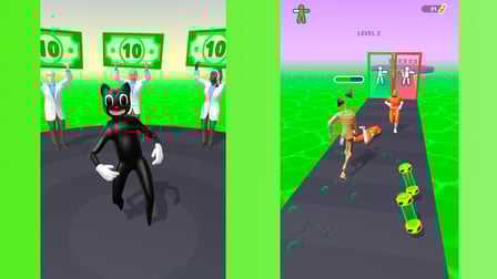 Prepárate para un paseo salvaje con Monstruo Extraño Rush, un emocionante juego de corredor en tercera persona disponible para jugar en línea para gratis. En este adictivo juego, comienzas como un corredor básico que avanza automáticamente. Tu objetivo es sortear hábilmente una serie de obstáculos y atravesar los arcos correctos para transformarte en un poderoso monstruo. ¡Cuidado con los arcos rojos, ya que pueden quitarte las piezas de disfraz de monstruo que tanto te costó ganar!
