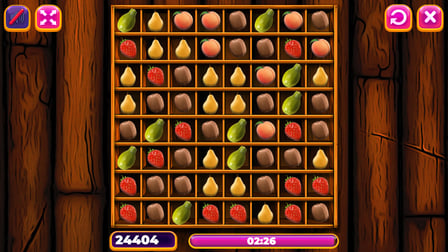Jugar a emparejar frutas es fácil e intuitivo. El juego se controla con simples clics del mouse o toques en la pantalla táctil. Los jugadores pueden intercambiar frutas adyacentes haciendo clic o tocando sobre ellas para unir tres o más en una fila o columna. A medida que las frutas chocan y se fusionan, aparecen nuevas oportunidades para crear coincidencias, y los jugadores deben elaborar estrategias continuamente para conectar tantas parejas como sea posible antes de que se agote el tiempo.