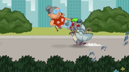 R: Te enfrentarás a una variedad de enemigos, incluyendo palomas, ratas, alienígenas, cocodrilos y otros animales peculiares.
