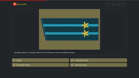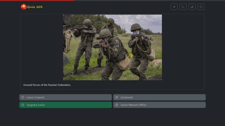 Sumérgete en un fascinante mundo de rangos militares con Guess the Russian Shoulder Straps, un envolvente juego de cuestionario que pone a prueba tus conocimientos sobre las insignias del Ejército y la Armada Rusos. Perfecto para los aficionados a la historia y a los cuestionarios, este juego ofrece acceso gratuito a una diversidad de 101 preguntas. Avanza por el cuestionario, contestando en línea sobre rangos, banderas e insignias mientras disfrutas de la experiencia inmersiva enriquecida por variadas marchas militares.