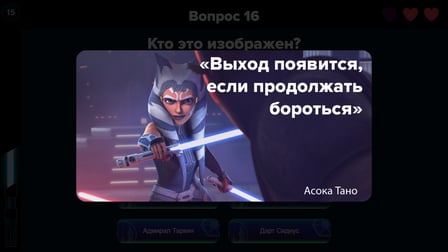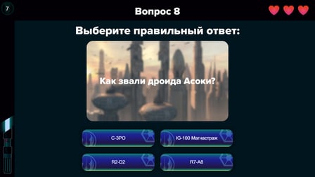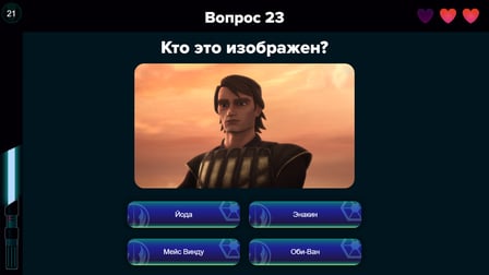 Jugar Quiz: The Clone Wars es simple e intuitivo. En tu teléfono o computadora, comienza seleccionando el enlace del juego. Escoge una respuesta para cada pregunta que se presente en la pantalla, y recuerda que cada pregunta tiene únicamente una respuesta correcta. Si respondes incorrectamente, perderás corazones, ¡así que piensa con cuidado!