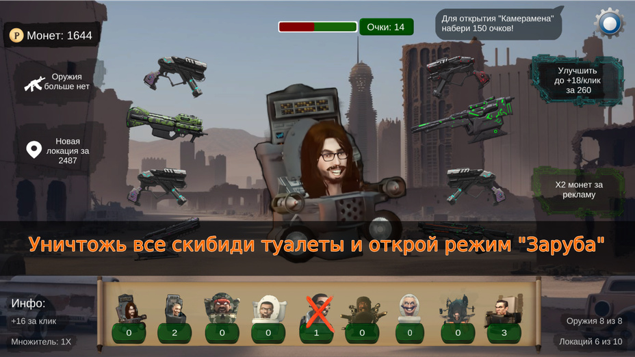 Puedes desbloquear el Cameraman a los 150 puntos y el emocionante Botón del Apocalipsis a los 700 puntos, mejorando notablemente tu experiencia de juego.