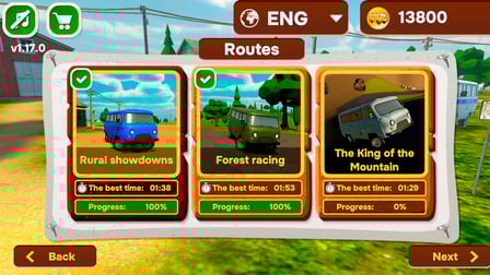 El juego presenta tres pistas principales: "Duelo Rural", "Carrera por el Bosque" y "El Rey de la Montaña", cada una con sus desafíos únicos y un entorno de carreras emocionante.