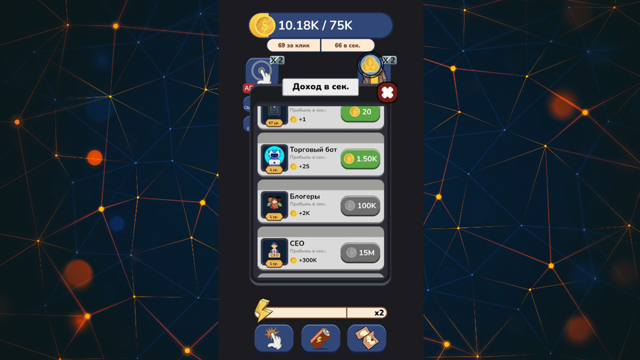 Este juego combina de manera única la mecánica clicker con la gestión del mercado de criptomonedas, ofreciendo una experiencia educativa e interactiva que refleja estrategias financieras del mundo real.