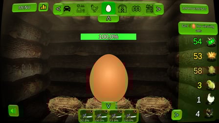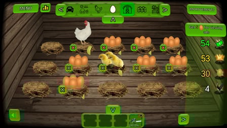 Los huevos pueden venderse por moneda del juego, que utilizarás para comprar más huevos, mejorar tu equipo y expandir tu granja.