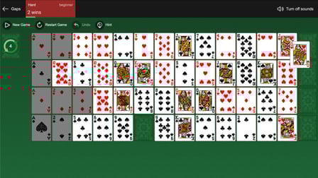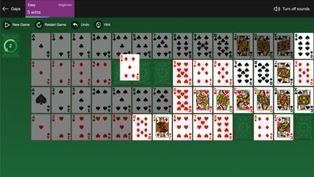 Para jugar al Solitario Gaps, comience barajando una baraja estándar de 52 cartas y colocándolas en cuatro filas con espacios entre ellas. Los jugadores pueden mover cartas a los huecos o espacios vacíos, con el objetivo de organizarlas en orden creciente. Puede arrastrar tarjetas para llenar los huecos o hacer clic en ellas si está jugando una versión digital. El objetivo es llenar las filas con cartas del mismo palo, comenzando por el As y progresando hasta el Rey.
