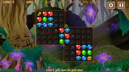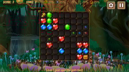 Gems: match 3 es fácil de aprender pero difícil de dominar. El objetivo es unir tres o más gemas del mismo tipo para eliminarlas del tablero y sumar puntos. A medida que avances por los niveles, encontrarás objetos y obstáculos especiales que requieren una planificación estratégica y un pensamiento rápido.