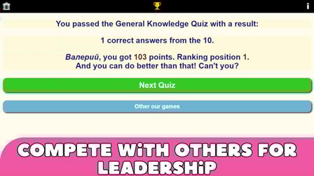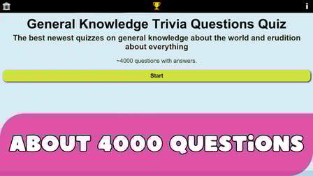 Preguntas del Cuestionario de Conocimientos Generales con respuestas es un emocionante juego educativo en el que puedes poner a prueba tus conocimientos sobre una amplia gama de temas. Juega en línea gratis sin descargar y sumérgete en la atmósfera de desafíos estimulantes para el cerebro. Ya seas un entusiasta de las curiosidades o un aprendiz casual, este juego brinda la oportunidad perfecta para ampliar tus horizontes y mejorar tu inteligencia. Participe con más de 4000 preguntas, cada una diseñada para desafiar su intelecto y brindarle comentarios inmediatos. Los cuestionarios están diseñados para ser divertidos y educativos, lo que los convierte en una opción ideal para niños, adolescentes y adultos por igual.