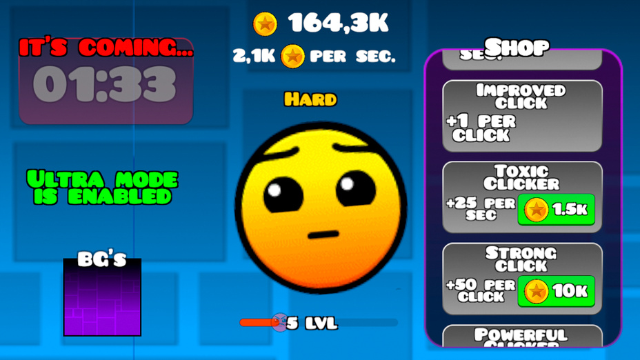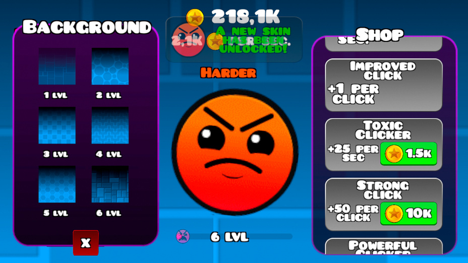 Inspirado por el éxito de la franquicia Geometry Dash que ha cautivado a las audiencias con su desafío rítmico y dinámico, Geometric Dash: Evolution to the Demon! mejora la fórmula original al introducir mecánicas de clicker, creando un giro atractivo que fusiona ritmo y estrategia.
