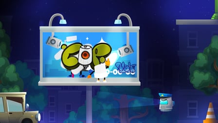 Graffiti Time - Spray Paint es un emocionante juego de arcade en el que puedes dar rienda suelta a tu creatividad y habilidades de etiquetado. Juega en línea gratis sin descargar y sumérgete en el vibrante mundo del arte callejero. En este juego, acompañas al Sr. Fat Cap mientras viaja por el universo, agregando color y estilo a las calles aburridas. Con animaciones geniales y la emoción de pasar sigilosamente por robots listos para atraparte, estarás absorto en la atmósfera única del juego. Monta en tu mini cruiser board, ejecuta kickflips por dinero extra y disfruta del modo carrera de skate, desafiantes minijuegos y modo de etiquetado a mano alzada. Creado por un artista de graffiti de la vida real, el juego está diseñado para llevar la esencia del arte callejero a su computadora de escritorio, dispositivo Android o iOS.