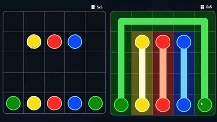Elige un tamaño de rompecabezas, que puede variar desde una cuadrícula de 5x5 hasta una más desafiante de 14x14. Usa el ratón (ordenador) o toca (móvil) para conectar los puntos coincidentes con líneas continuas que se asemejan a tuberías. Evita los cruces para asegurar que cada camino sea único. ¡Completa cada espacio de la cuadrícula para ganar cada nivel!