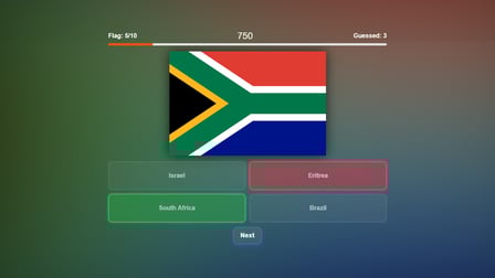 ¡No hay controles complicados aquí! Simplemente haz clic en la bandera de tu elección en un ordenador o toca la bandera en la pantalla de tu móvil para hacer tu selección. Cada elección que hagas se registra al instante, y tu puntuación se actualiza con cada respuesta correcta.