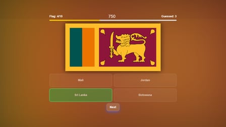 ¡Jugar a "Guess the Flag: World Countries Quiz" es sencillo! Cuando comienza el juego, aparecerá el nombre de un país junto con varias banderas. Tu tarea es elegir la bandera correcta que coincida con el nombre del país mostrado. Este divertido cuestionario se adapta fácilmente ya sea que estés usando un teléfono o un ordenador, proporcionando una experiencia fluida en todos los dispositivos.