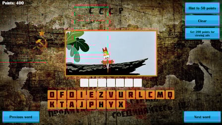 Guess the Soviet Cartoon es un atractivo juego de preguntas en el que puedes poner a prueba tu memoria y nostalgia por las animaciones soviéticas clásicas. Revive la época dorada de los dibujos animados soviéticos y desafíate a ti mismo con este juego de navegador de alta calidad. Juega en línea gratis, sin necesidad de registro o descargas, y sumérgete en un mundo lleno de personajes queridos e historias inolvidables. El juego es perfecto para aquellos que disfrutan de cuestionarios casuales y rompecabezas de palabras, y está disponible en múltiples plataformas, incluidas computadoras de escritorio, Android e iOS. Tanto si eres fanático de los crucigramas como si eres un entusiasta de los cuestionarios, este juego promete cautivar y entretener, ofreciendo un delicioso viaje a través de clásicos animados memorables.