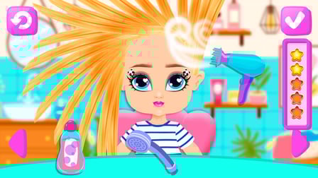 Peinados para bebés: Salón de belleza es un emocionante juego casual diseñado especialmente para niñas. Sumérgete en el encantador mundo del peinado donde tu creatividad no conoce límites. Este juego HTML5 basado en navegador te permite jugar en línea gratis sin descargas. Conviértete en un maestro en el arte del peinado mientras creas peinados elegantes para adorables muñecas, guardando cada obra maestra en tu colección personal. El juego, ambientado en un vibrante salón de belleza, viene con una gran cantidad de opciones de peinado para explorar, como lavar, cortar, trenzar y colorear. Deja volar tu imaginación y crea diseños de cabello únicos, complementados con joyas elegantes para completar el look. Perfecto tanto para niños como para adolescentes, este juego es una excelente manera de desarrollar un sentido del estilo y fomentar la creatividad.
