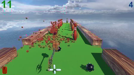 Entra en este cautivador desafío con estas simples instrucciones. Primero, lanza el juego en tu ordenador o teléfono. Usa tu ratón o dedo para controlar el martillo. Apunta cuidadosamente y desliza o haz clic para golpear la bomba. El objetivo es enviarla volando en un ángulo perfecto para derribar todos los bolos. ¡Concéntrate en la velocidad y el ángulo de tu disparo para lograr el máximo efecto!