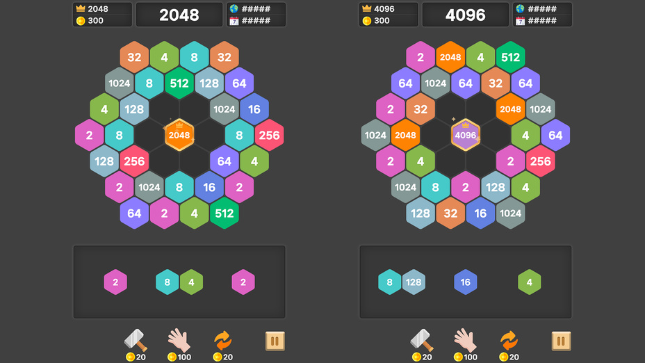 ¡Tu objetivo es fusionar bloques de números hexagonales para alcanzar el mayor número posible, siendo 2048 un hito clave!
