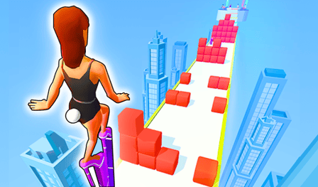 - Navega por la pista mientras recoges tacones y evitas obstáculos.