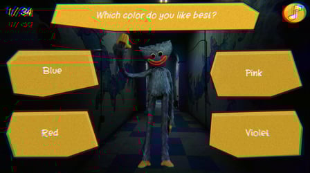 Huggy Wuggy: Descubre qué tipo de juguete eres es un emocionante juego de preguntas y respuestas de terror en el que puedes sumergirte en el misterioso universo de Huggy Wuggy y sus enigmáticos compañeros. Juega en línea gratis sin descargas ni registros y prepárate para explorar la escalofriante atmósfera de suspenso y misterio. Este juego ofrece una combinación única de emoción y tensión, lo que te permite descubrir qué personaje encarnarías en esta oscura narrativa. Cada decisión que tomes revelará aspectos ocultos de tu personalidad y mostrará qué tan bien entiendes la intrincada trama y los personajes.