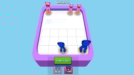 ¡Comenzar con Huggy Wuggy Fusion es fácil! Comience comprando unidades básicas de Huggy Wuggy. Fusiona unidades idénticas para formar versiones más potentes. Coloca estratégicamente a tus Huggy Wuggy en el campo de batalla para defenderte de Kissy Missy y otras amenazas. A medida que avances, desbloquearás nuevos y más poderosos Huggy Wuggy para agregar a tu ejército.