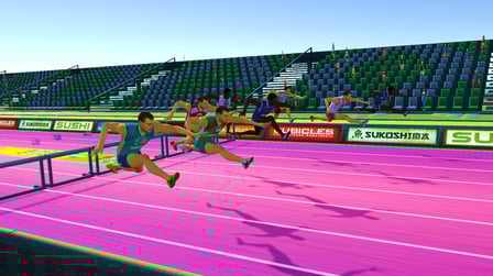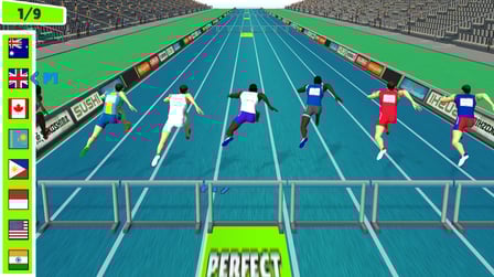 Hurdles Heroes es un juego de carreras en el que los jugadores navegan con sus personajes a través de carreras llenas de obstáculos y obstáculos, con el objetivo de terminar primero contra otros jugadores o corredores de la CPU.