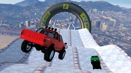 Ice drop: GTA 5 Online es un emocionante juego de arcade diseñado para los amantes de las emociones fuertes a los que les encanta poner a prueba su temple en superficies resbaladizas. Esta experiencia inmersiva en línea te permite desafiar tu destreza al conducir cruzando abismos helados, realizando trucos asombrosos y superando a otros jugadores, todo en un intento por llegar a la meta en un tiempo récord. Disponible en computadoras de escritorio, Android e iOS, este juego es perfecto para aquellos que anhelan gráficos de alta calidad y un juego competitivo sin la molestia de descargas o registros. Sumérgete en el mundo lleno de adrenalina de Ice drop: GTA 5 Online, donde el único límite es tu habilidad al volante.
