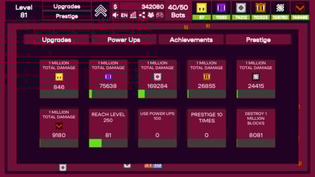 Maximiza la eficiencia de tu destrucción concentrándote en mejorar tus destructores de manera uniforme. Priorice las mejoras que aumentan la velocidad y la fuerza para atravesar bloques más rápido. Utilice habilidades especiales estratégicamente durante los niveles más difíciles para un mayor impacto. Esté atento a los logros, ya que a menudo brindan valiosas recompensas y bonificaciones para acelerar su progreso.