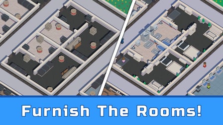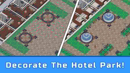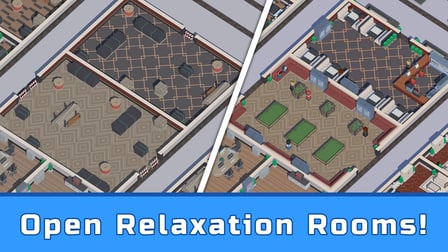 Obtiene ganancias administrando su hotel de manera efectiva, actualizando funciones y contratando trabajadores para automatizar tareas, lo que le permite ganar incluso cuando está inactivo.
