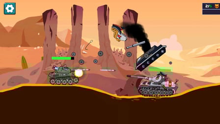 Killer Tanks es un emocionante juego arcade de acción en el que puedes sumergirte en el intenso mundo de las batallas de tanques. Este juego hardcore en 2D te reta a tomar el control de un poderoso tanque y sumergirte en un campo de batalla lleno de enemigos diversos y jefes formidables. A medida que progresas, tienes la oportunidad de mejorar tu tanque, mejorando tus capacidades de combate. Disponible en Android, Killer Tanks ofrece una experiencia en línea perfecta en la que puedes jugar gratis sin necesidad de descargarlo, lo que te permite sumergirte de inmediato en la atmósfera electrizante de la guerra estratégica y la acción explosiva.