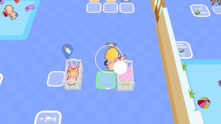 Para jugar Kinder Garden, simplemente mueve tu personaje usando el joystick en la pantalla. Cuando un bebé comience a llorar, acércate a él y selecciona la acción adecuada, como cambiar el pañal o darle de comer. Aliméntalos con biberones y llévalos a la cuna para calmarlos, siempre buscando mantener su felicidad al máximo mientras mejorarlo la guardería.