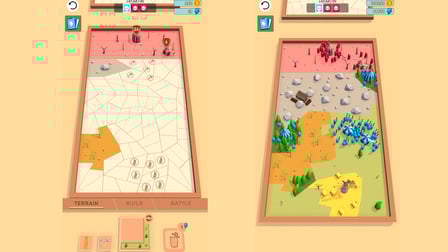 Usa el ratón para seleccionar y colocar losetas de terreno y edificios. Haz clic para construir estructuras y despliega tus tropas una vez que tus cuarteles estén listos. Observa cómo tus decisiones impactan el resultado de tus batallas mientras luchan automáticamente.