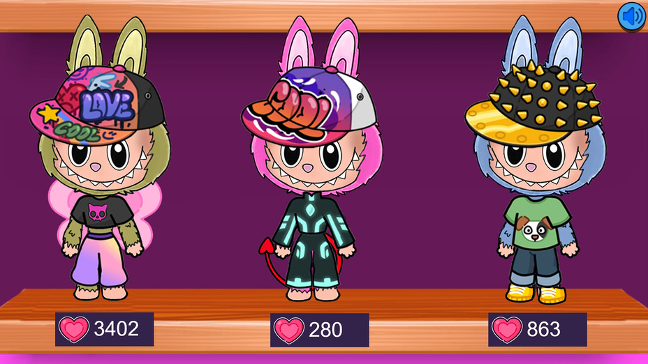 En Labubu: Stylish Fashion, los jugadores son introducidos a un armario caprichoso que rebosa de opciones de moda. Desde disfraces funky hasta vestidos elegantes, cada artículo exuda estilo. Los vibrantes visuales crean una atmósfera animada, invitando a los jugadores a dejar volar su imaginación mientras crean looks distintivos para sus monstruos Labubu, fomentando una experiencia de jugabilidad encantadora y atractiva.