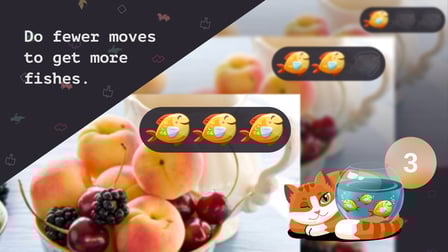 El objetivo es completar 30 rompecabezas de imágenes mientras haces el menor número de movimientos posible para ganar el máximo número de peces y mantener feliz al gatito.