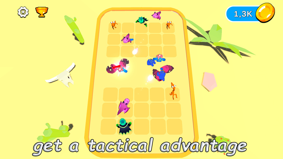 Comienza seleccionando tus monstruos iniciales y colócalos en el campo de batalla. Fusiona monstruos idénticos para formar unidades más fuertes. Posiciona a tus tropas estratégicamente para optimizar sus fortalezas y combatir al enemigo de manera efectiva. Controla tus recursos y toma decisiones tácticas para dominar a tus oponentes.