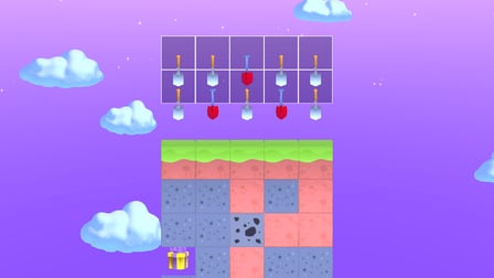 - Deja caer tu pico en la mina y observa cómo rompe bloques, recolectando valiosos recursos en el camino.