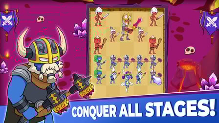 En Merge Master: Stick War Legacy, tomarás el control de un equipo de intrépidos guerreros stickman para llevar a tu ejército a la victoria. Te encontrarás con una variedad de ubicaciones únicas y oponentes desafiantes, todo mientras utilizas un innovador sistema de fusión para mejorar estratégicamente a tus héroes. Este juego está diseñado para jugadores que disfrutan de un juego estratégico y casual, por lo que es adecuado para adolescentes y adultos por igual. Con infinitas oportunidades de crecimiento y evolución, tus guerreros stickman enfrentarán numerosos desafíos que requieren pensamiento táctico y una rápida toma de decisiones.