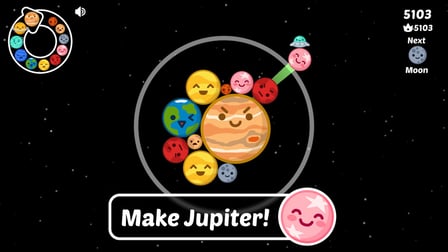 Fusionar planetas: Suika Puzzle es un emocionante juego de rompecabezas casual en el que puedes conectar planetas idénticos para crear cuerpos celestes más grandes. Juega en línea gratis sin descargar y sumérgete en la atmósfera de gravedad orbital única. Tu misión es conectar dos Júpiter, el planeta más grande del sistema solar, sin desbordar la órbita. Este innovador juego reinventa la mecánica clásica de 2048 y el juego Suika, ofreciendo a los jugadores un nuevo desafío. Perfecto para aquellos que disfrutan del entrenamiento cerebral y los acertijos lógicos, se puede acceder a Merge Planets: Suika Puzzle en plataformas de escritorio, Android e iOS. Compite con otros jugadores, acumula puntos y apunta a lo más alto de la clasificación en este juego de navegador de alta calidad.