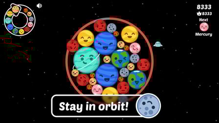 Fusionar planetas: Suika Puzzle es un juego sencillo de aprender, pero ofrece profundidad para aquellos que buscan un desafío. Tu objetivo es fusionar planetas similares arrastrándolos y soltándolos en órbitas. Tenga cuidado de no desbordar la órbita, ya que la ubicación estratégica es clave para el éxito.