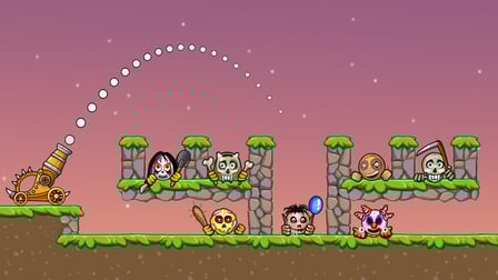 ¡Comenzar con Monster Bash es fácil! En tu ordenador, utilice su ratón para apuntar y haga clic para lanzar su bala de cañón. Si estás en un teléfono, simplemente toque la pantalla para apuntar y suelte para disparar. Cada nivel introduce nuevos monstruos con comportamientos diferentes, ¡así que adapta tu estrategia en consecuencia!