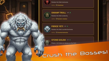 Domina el gameplay aprendiendo tácticas ingeniosas como eliminar estratégicamente bloques para maximizar el daño a los jefes. Con cada éxito, aumenta tu XP y mejora tus habilidades para enfrentarte a enemigos cada vez más difíciles.