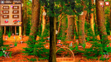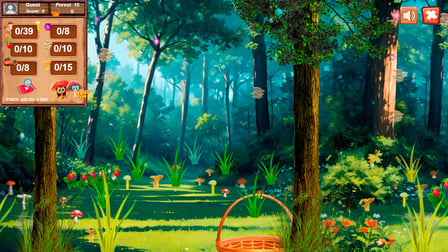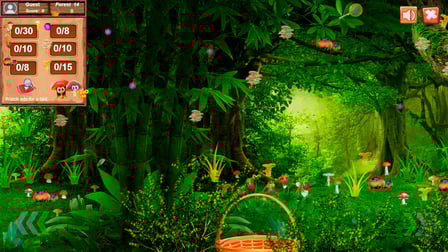 Usa tu ratón o toque para explorar el bosque. Haz clic o toca para recoger setas, y consulta la guía para asegurarte de que estás recogiendo los tipos correctos.