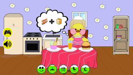 En Mi Lalafanfan de Pato: ¡Vístete, Aliméntate, Lávate!, te conviertes en el cuidador de un encantador pato virtual llamado Lalafanfan. Su objetivo principal es garantizar su felicidad atendiendo sus diversas necesidades. Explore diferentes salas dentro del juego, como la sala de juegos, el vestidor y el baño, para mantener a Lalafanfan entretenido y satisfecho. El juego no presenta niveles específicos, lo que permite una interacción y creatividad infinitas mientras ayudas a Lalafanfan a hacer estallar burbujas en la bañera o a elegir accesorios para su conjunto de moda. Ideal para niños y adolescentes, este juego fomenta las habilidades de crianza y la creatividad en un entorno seguro y lúdico.