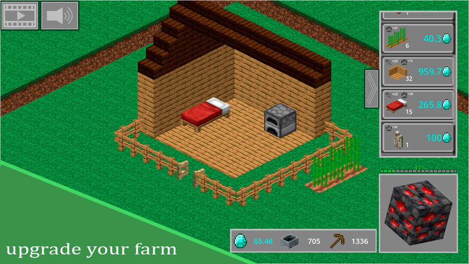 Para jugar Granja de Mycraft en tu teléfono, simplemente toque los bloques con el dedo para romperlos. Para ordenador usuarios, usen su mouse para hacer clic en los bloques. Una vez que hayas agregado suficientes recursos, navega por el menú de actualización para mejorar tu aldea y desbloquear nuevas funciones. Cuanto más juegues, más actualizaciones innovadoras estarán disponibles, mejorando tu experiencia de juego en general.