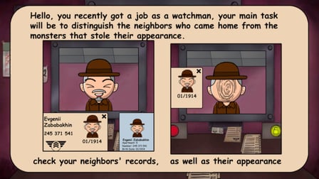 En Neighbor's Doppelganger, su papel como guardia de seguridad implica analizar la documentación de los visitantes y tomar decisiones críticas sobre su entrada. Manténgase alerta, ya que los doppelgangers son conocidos por sus tácticas engañosas. Mantén tu ingenio sobre ti para garantizar la seguridad del edificio y sus habitantes.