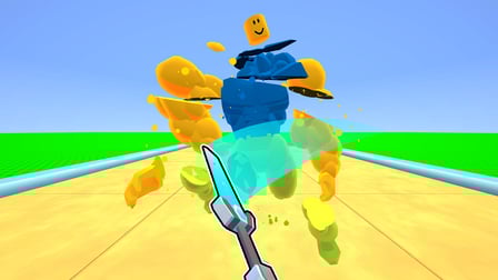 ¡Jugando a Obby Sword! Cortar enemigos en Blocks Arena es simple. En un ordenador, puedes blandir tu espada con los clics del mouse, mientras estás en tu teléfono, simplemente toque la pantalla para iniciar ataques. ¡El objetivo es derrotar a tantos enemigos como sea posible mientras evitas obstáculos en la arena!